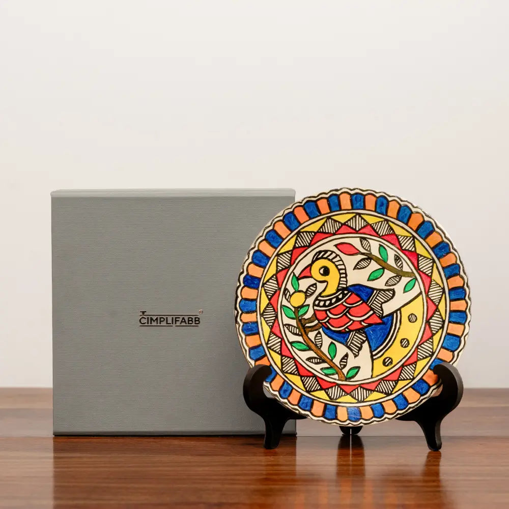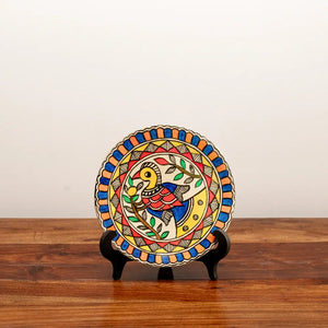 - This Madhubani Mayur Decor Plate (Small) hand painted in bright colors will bring a splash of ethnicity to your home.