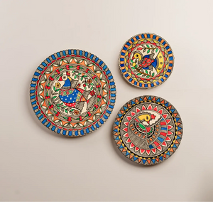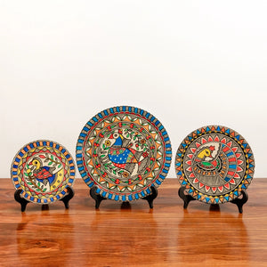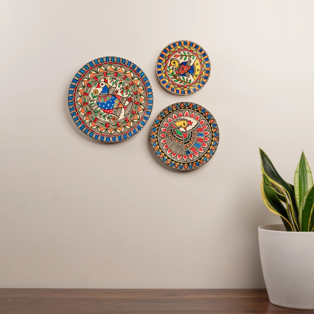 Madhubani Mayur (Peacock) Harmony Décor Plates (Set of 3)